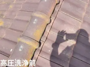 洗浄前では、瓦表面に汚れや苔が目立っていましたが、高圧洗浄後にはしっかりと綺麗になり、