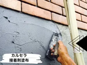 先日行った、南足柄市K様邸の外壁塗装工事カルセラ張りの様子です。
