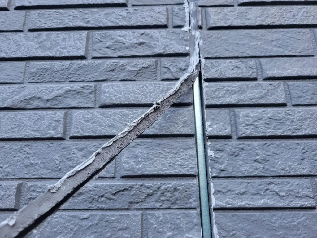 秦野市でコーキング打ち替え工事の劣化目地撤去とテープ養生を行いました。