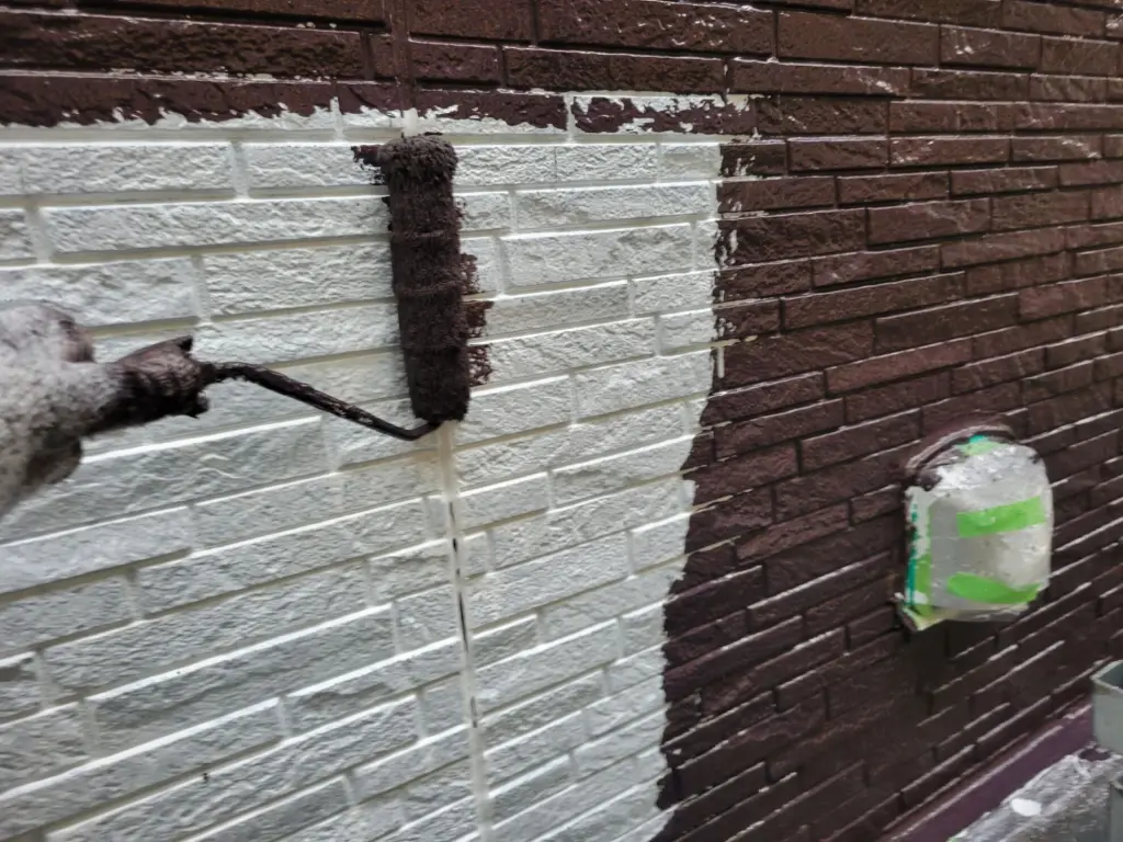上塗り(仕上げ塗装)の前の作業工程で下塗り部分をしかりと塗り重ねます。