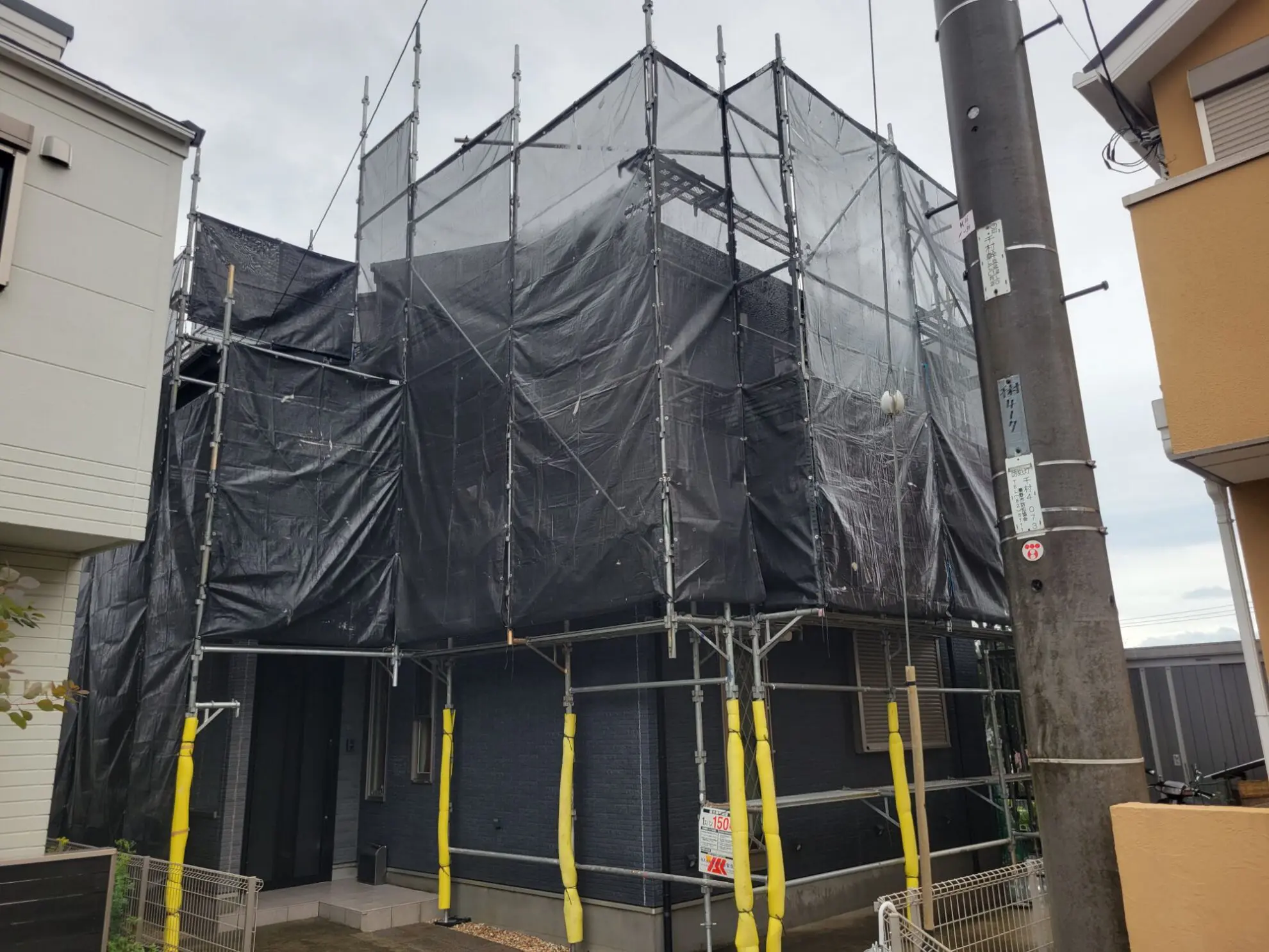 今回は、外壁塗装工事の足場設置が完了した後の進捗状況をお伝えいたします。