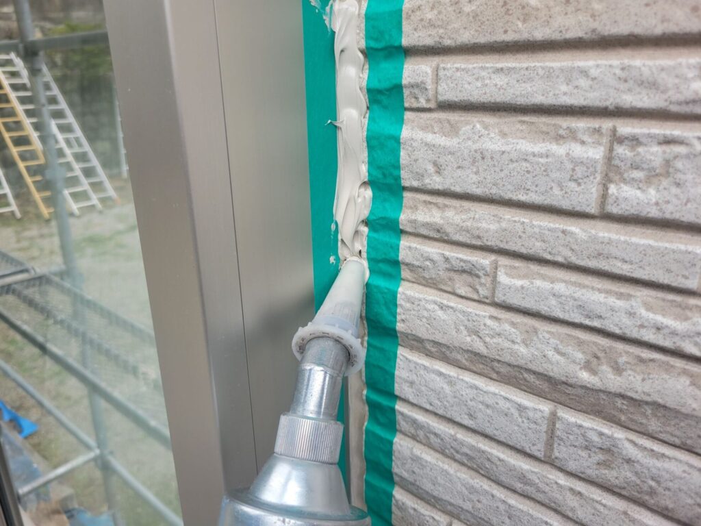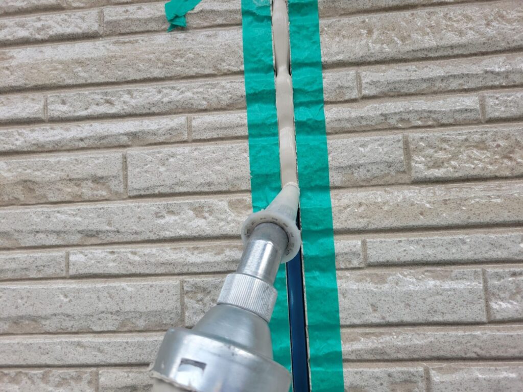 秦野市の外壁塗装はクリヤー塗装でしたのでコーキングは後打ちにしました。クリヤー塗装は塗装をしてしまうとコーキング部分が割れてしまう可能性がありまので、外壁塗装の前に確認しましょう。