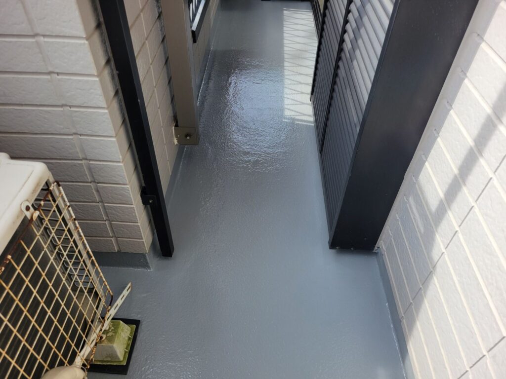 劣化し色あせしたFRP防水の表面が綺麗にななりました。