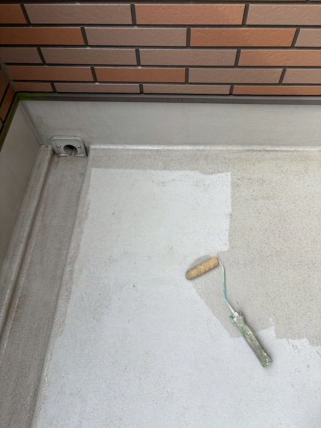 特に立ち上がり(壁との境目)は水が残りやすいので、 しっかりと乾燥させ、塗装が可能な状態に整えました。